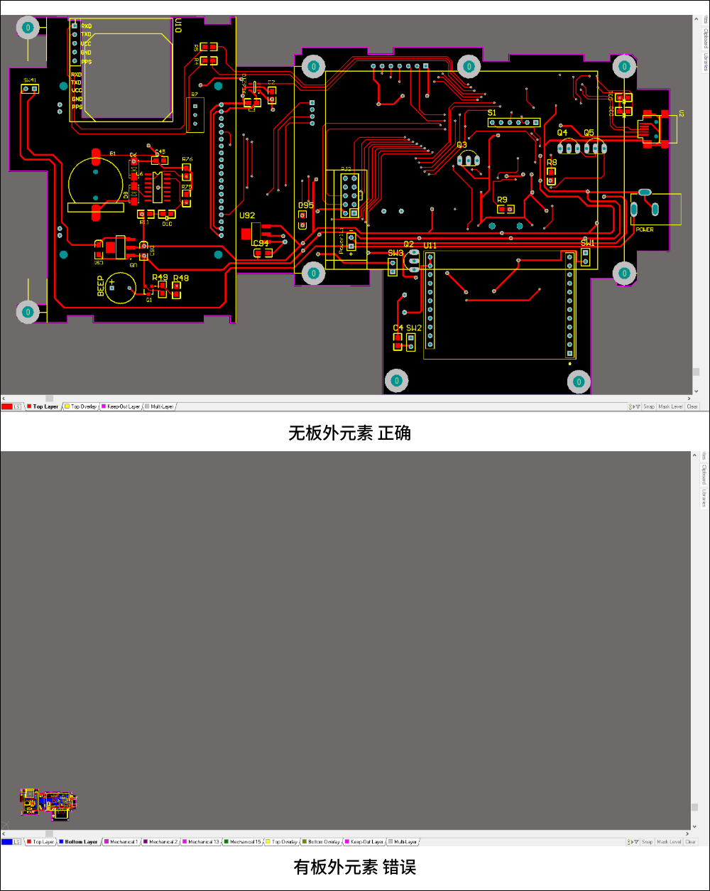 1)找到板外元素并將其刪除,再查看板圖是否居中。(快捷鍵:按Z再按A)