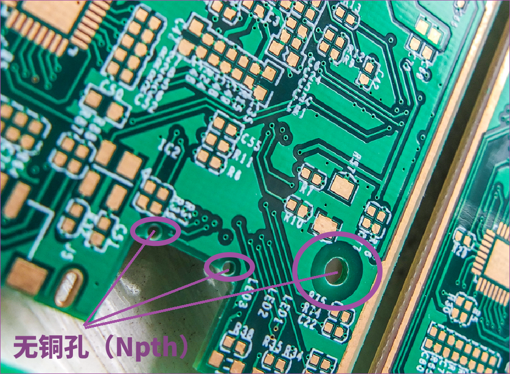 3)無銅安裝孔(Npth): 螺絲孔或器件塑料固定腳,定位固定作用,無電氣性能。