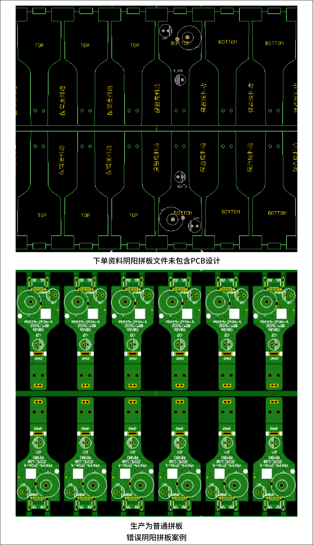 2)如提供陰陽拼板文件,請提供包含PCB設計資料的文件并在下單時備注告知,避免生產出錯。