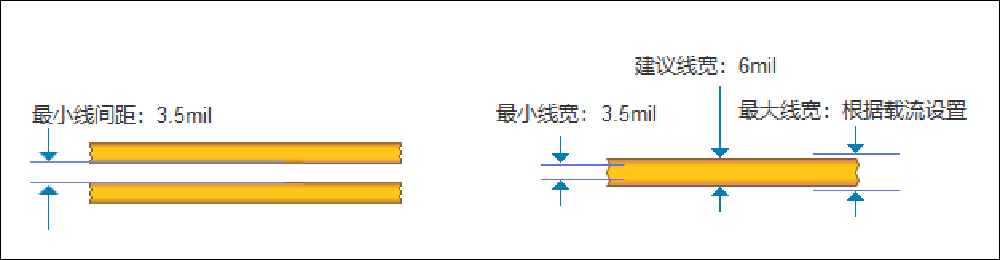 1)線寬/線距:1oz銅厚線寬≥3.5/3.5mil,2oz銅厚線寬≥5/6mil 。