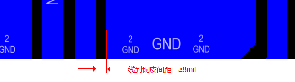 3)鋪銅間距:鋪銅間距≥8mil(0.2mm)。