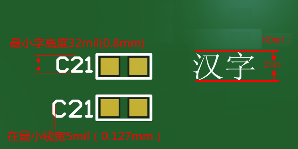 絲印漢字最小高度:≥80mil 。