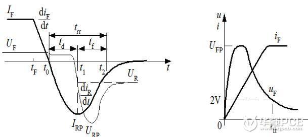 二極管反向恢復時電流電壓波形 二極管正向導通電流電壓波形