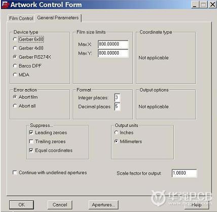 假設 PCB 板的各層已經添加完畢.在 Allegro 的主菜單 ManufactureArtwork 下選 General Parameters,并設定如下圖