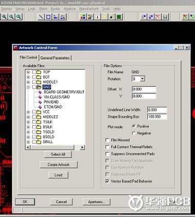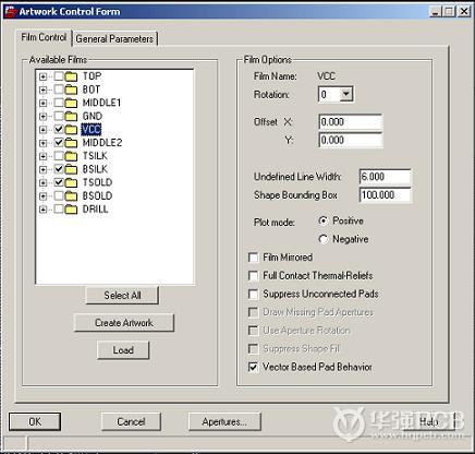 同時窗口由面的選項可根據各層具體情況選擇,(如無寬度的線生成光繪時的默認寬度,是否是反片…).如下圖: