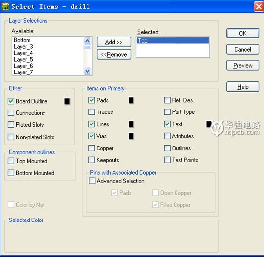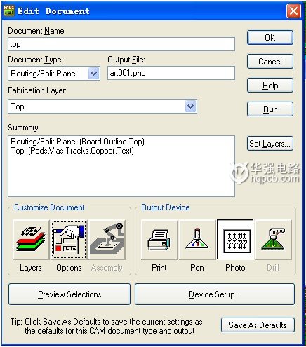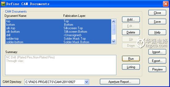 15,所有上面都設置好后,回到Define CAM Documents下,將top,bottom,silk-top,silk-bottom,drill,