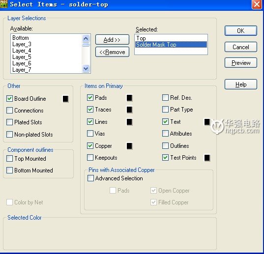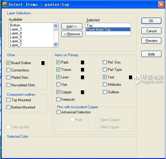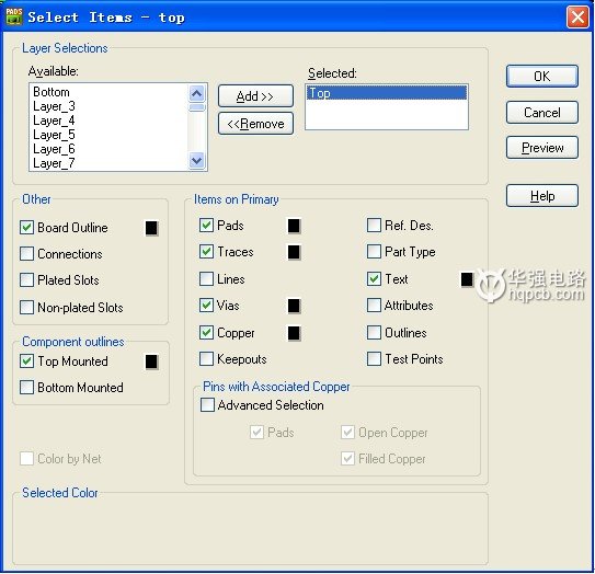 ,Output File也可以自己定義名字,F(xiàn)abrication Layer設成相應層,如Top。如下圖所示: