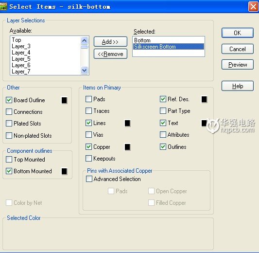 9,Customize Document下Layers需要設置一下,SilkscreenBottom層如下圖所示: