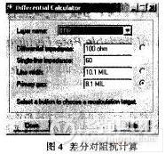 2.按照對信號TX+/-阻抗控制要求計算差分對線寬、線距,如圖4所示,選擇走線層面top層,填入差分對阻抗100歐,單線阻抗60歐,得到線寬10.1mil,主要線間距8.1mil。