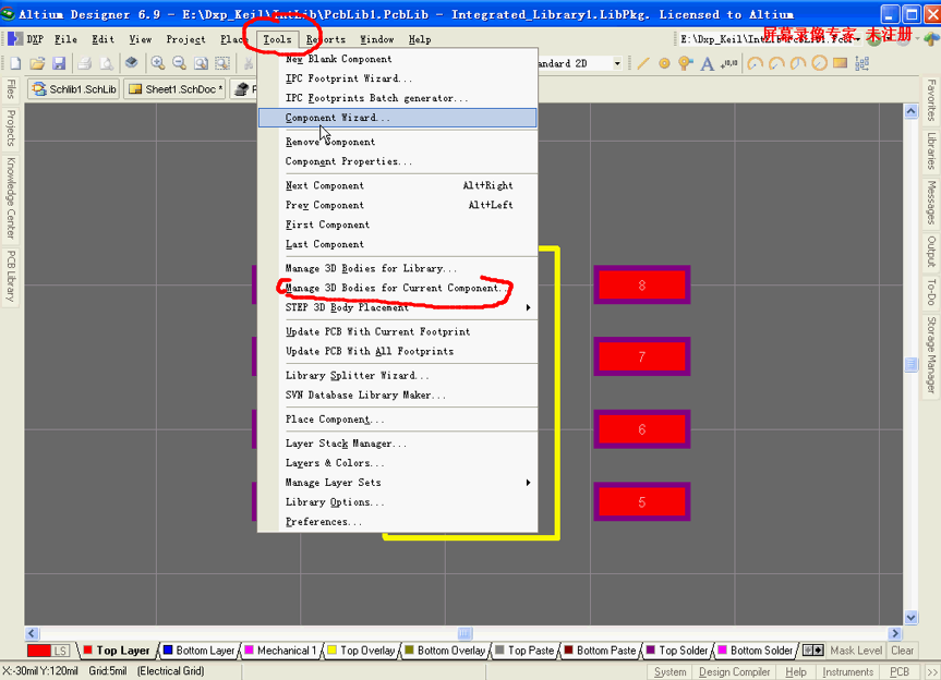 (2)如圖打開tool菜單下為當(dāng)前元器件添加3d封裝
