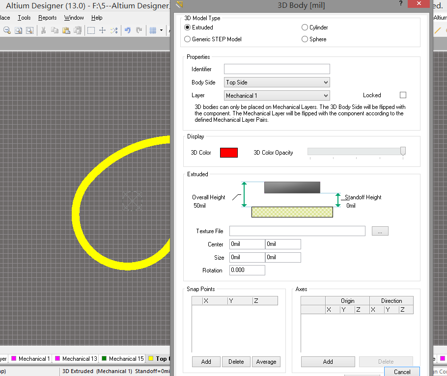 (3)雙擊圖中粉紅網(wǎng)格可以進(jìn)行物體高度等信息設(shè)置,即和之前一規(guī)則元器件的設(shè)置相同