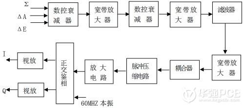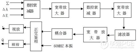 視頻接收組合是由I/Q正交鑒相器和視頻放大器組成。其中應用數控衰減器實時調整各路本振信號的相位,以達到補償接收機系統相位一致性的目的。最后輸出反射和應答的12路I/Q信號以及反射和應答的檢波信號。