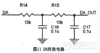 DA轉換電路示于圖11,利用單片機自帶的PWM功能來實現DA轉換。