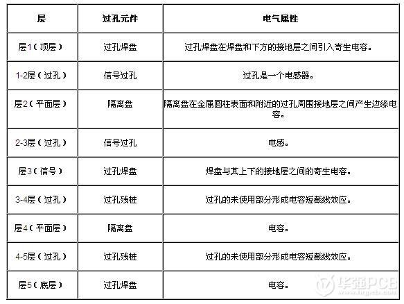 如表格1所示,我們來仔細看一看每個過孔元件的電氣屬性。