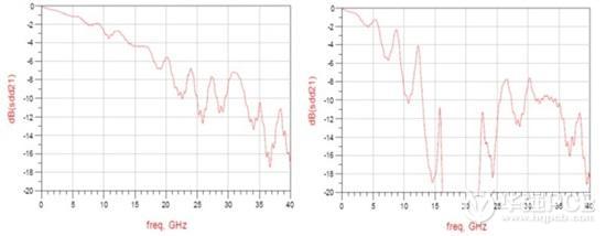 圖4:頻率響應(左:12.5GHz時的插入損耗大約為3dB ;右:12.5GHz時的插入損耗大于8dB)