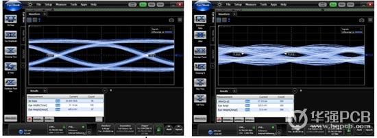 圖5:25Gbps時的數據眼圖(左:使用背面鉆孔時,數據眼是打開的;右:無背面鉆孔時,數據眼是關閉的。)