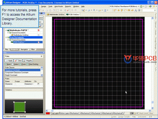 PCB 編輯器是一個以規則為主導的環境,這意味著,在用戶改變設計的過程中,如畫線,移動元器件,或者自動布線,Altium Designer都會監測每個動作,并檢查設計是否仍然完全符合設計規則。如果不符合,則會立即警告,強調出現錯誤。在設計之前先設置設計規則可以讓用戶 集中精力設計,因為一旦出現錯誤軟件就會提示。