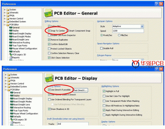 可 以在PCB文件中,使用組合CTRL鍵和箭頭鍵(縱向或橫向)或CTRL、SHIFT和箭頭鍵移動選定的物體。選擇對象的移動基于Board Options對話框(Design ? Board Options(快捷鍵:D,O)中的當前Snap Grid設置。您可以使用對話框來設定網格預置值。使用快捷鍵G來遍歷不同的snap grid的設置值。用戶也可以使用View ? Grids子菜單或Snap Grid右鍵點擊菜單來完成。