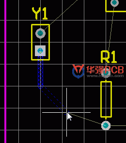 將光標定位在排針 Y1較低的焊盤。點擊或按下ENTER ,以確定線的第一點起點。
