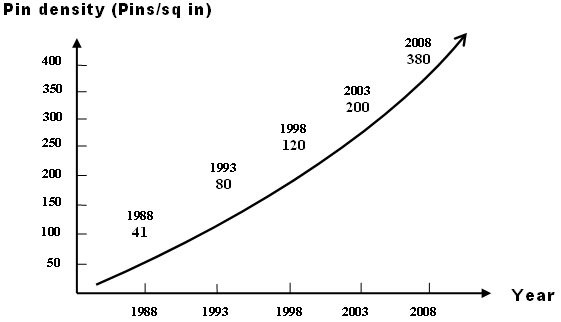 過去20年單板PIN密度(Pin density, Pins/sq in):的變遷: