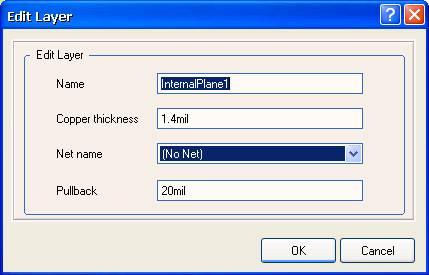 Pullback :用于設置內層銅膜和 過孔 銅膜不相交時的縮進值,這里取默認值。同樣的,對另一個內層的屬性指定為: