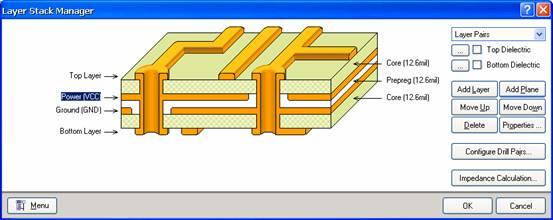 然后執(zhí)行主菜單命令 Design/Layer Stack Manager… ,系統(tǒng)將彈出 Layer Stack Manager (板層管理器)對話框。