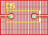 如圖32 所示,可以看到在網(wǎng)絡名為 VCC 的網(wǎng)絡標號的 過孔 處有一虛線圓,表示“VCC”電源內層的使用情況。