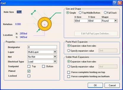 Location :用于設置焊盤圓心的 x 和 y 坐標的位置。