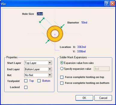 Location :用于設置 過孔 的圓心的坐標 x 和 y 位置。