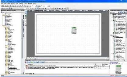 如果你需要ADC,只要從開發(fā)環(huán)境右方的元件選擇區(qū)選擇該功能區(qū)塊并拖曳下來;如果你需要PWM,也是一樣的步驟。要運(yùn)算放大器或是SPI控制器嗎?也沒問題!把它們連結(jié)在一起以取得一個架構(gòu)圖,然后選擇哪些接腳與不同的功能關(guān)聯(lián),完成了硬件編譯,就可以準(zhǔn)備好撰寫應(yīng)用程序。