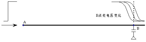 阻抗的變化必然影響信號(hào)的反射。在充電的開(kāi)始一段時(shí)間,阻抗很小,小于傳輸線的特性阻抗,將發(fā)生負(fù)反射,反射回源端A點(diǎn)的信號(hào)將產(chǎn)生下沖。隨著電容阻抗的增加,反射逐漸過(guò)渡到正反射,A點(diǎn)的信號(hào)經(jīng)過(guò)一個(gè)下沖會(huì)逐漸升高,最終達(dá)到開(kāi)路電壓。