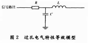 過孔作為一段特殊的傳輸線,在高速電路中,過孔不但產生對地的寄生電容,同時也存在著寄生電感,其電氣特性的等效模型如圖2所示。