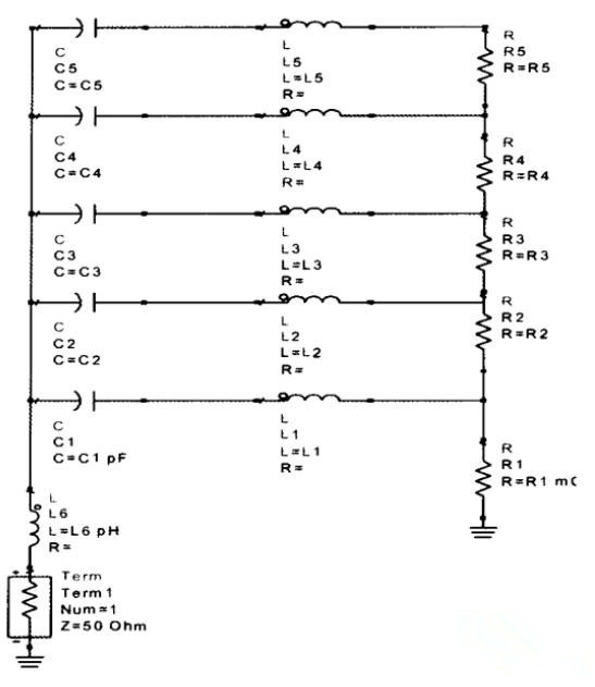 圖2多級(jí)RLC擬合鉭電容電路