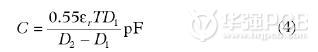 C表示電容值,A表示以cm2為單位的極板面積,k表示PCB材料的相對介電常數,d表示以cm為單位的極板間距離。