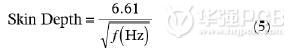 在高頻段,必須考慮一種稱為“趨膚效應”的現象。趨膚效應會引起電流流向導線的外表面——結果會使得導線的橫截面變窄,因此使直流(DC)電阻增大。雖然趨膚效應超出了本文討論的范圍,這里還是給出銅線中趨膚深度(Skin Depth)的一個很好的近似公式(以cm為單位):