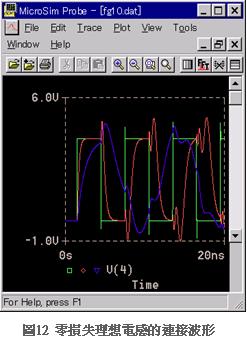不過噪訊濾波器要求適當的損失,尤其是連接防止用電感器的損失如果太低時幾乎沒有任何效果。圖12是兩端的反射100%布線,使用零損失理想電感器時的模擬分析連接波形(因為模擬分析可以創造零損失時各種狀態)。