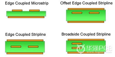 如圖2所示的橫截面是實際差分線版圖的最常見圖案。在采用帶狀線布線時,信號被FR-4材料夾在中間。而微帶線時,一條導體是裸露在空氣中的。因為空氣的介電常數最低(Er= 1),故頂層最適合布設一些關鍵信號,如時鐘信號或者高頻的SERial-DESerial (SERDES)信號。 微帶線布線應該耦合到下方的地平面,該地平面通過吸收部分電磁場線來減小電磁干擾(EMI)。在帶狀線中,所有的電磁場線耦合到上方和下方的參考平面,這大大降低了EMI。如果可能的話,應該盡量不要用寬邊耦合帶狀線設計。這種結構容易受到參考面中耦合的差分噪聲的影響。另外還需要PCB的均衡制造,這是很難控制的。總的來說,控制位于同一層上的線間距還是比較容易的。