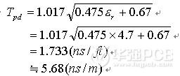 印刷電路板的比誘電率為4.7 時,傳輸延遲時間 :