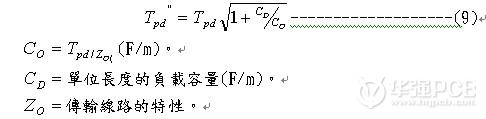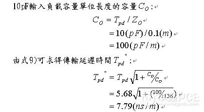 傳輸線路上有容量性負載時會影響傳輸延遲時間 ",它的傳輸延遲時間 是用下式表示: