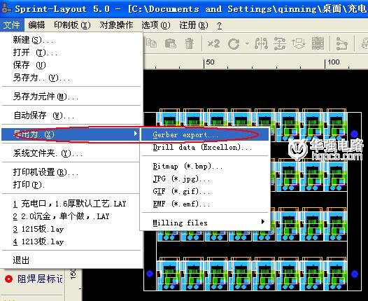 1:用SP-Layout50 打開要生成Gerber的PCB設(shè)計(jì)文件,在文件>導(dǎo)出為>Gerber export