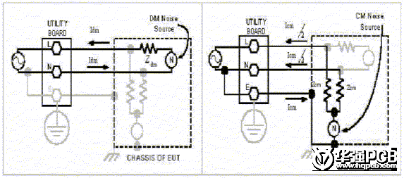 利用不等值的負載或線路阻抗,就能夠有效地將CM電流轉換成一部分是CM電流,另一部分是DM電流。例如:一個DC-DC轉換器(converter)供應電源給一個次系統,此次系統具有不等值(不均衡)的阻抗。而且在DC-DC轉換器的輸出端存在著尚未被察覺的共模噪聲,它變成一個非常真實的(差動)輸入電壓漣波,并施加給次系統。沒有次系統內建的「共模拒斥率(common mode rejection ratio;CMRR)」可以參考,因為此噪聲不完全是共模的。到最后,此次系統可能會發生錯誤。所以,在產生共模電流時,就要馬上降低它的大小,這是非常重要的,是第一要務。使阻抗均衡則是第二要務。此外,由于共模和差模的特性,共模電流的頻率會比差模的頻率大。因此,共模電流會產生很大的射頻輻射。而且,會和鄰近的組件和電路發生電感性與電容性的耦合。通常,一個5uA的共模電流在一個1m長的導線中,所產生的射頻輻射量會超過FCC所規范的B類限定值。FCC的A類規范限制共模電流最多只 能有15uA。此外,最短的交流電源線,依照標準規定是1m,所以電源線的長度不能比1m短。