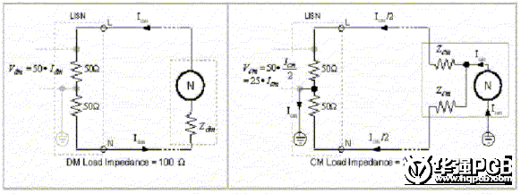 圖四:對DM和CM噪 聲源而言,LISN所代表的負載阻抗