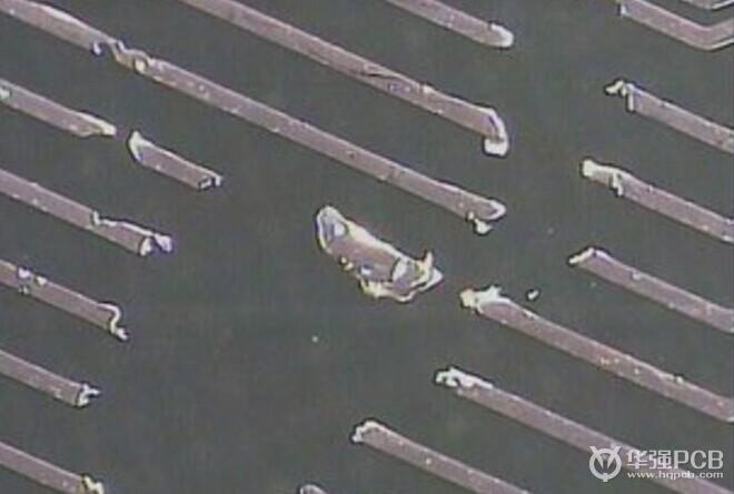 8、“爬錫”。在引線與黑體的結合部(根部)有錫層,像爬墻草一樣向黑體上爬,錫層是樹枝狀的疏松鍍層。這是由于鍍前處理中,用銅刷刷洗SMD框架,而磨損下來的銅粉嵌入黑體不容易洗掉,成為導電“橋”,電鍍時只要電析金屬搭上“橋”,就延伸,樹枝狀沉積爬開來與其他的銅粉連接,爬錫面積越來越大。