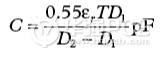當尋找有問題的寄生源時,可能用得著幾個計算上述那些寄生電容尺寸的基本公式。公式(1)是計算平行極板電容器(見圖5)的公式。