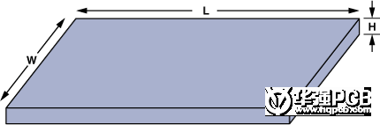 W表示印制線寬度,L表示印制線長度,H表示印制線的厚度。全部尺寸都以mm為單位。