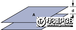 C表示電容值,A表示以cm2為單位的極板面積,k表示PCB材料的相對介電常數,d表示以cm為單位的極板間距離。