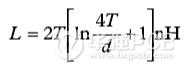 通孔是另外一種寄生源;它們能引起寄生電感和寄生電容。公式(3)是計算寄生電感的公式(參見圖8)。