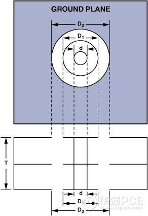 T表示PCB的厚度,d表示以cm為單位的通孔直徑。